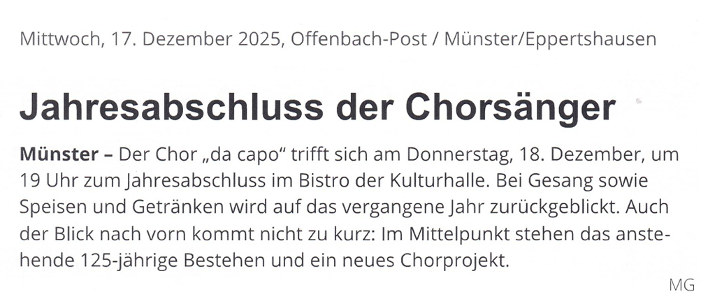 17.12.25 – Jahresabschluss der Chorsänger – Offenbach-Post