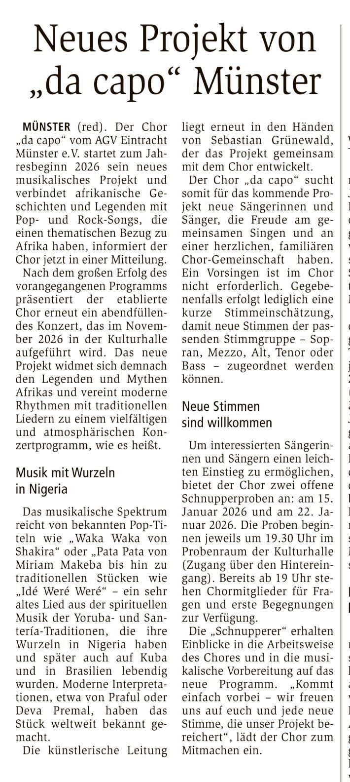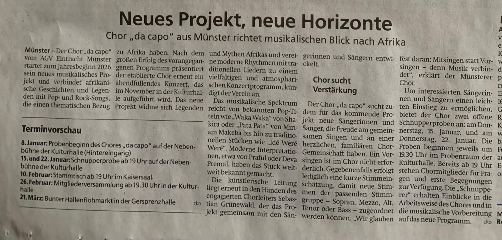 05.01.26 – Neues Afrika-Projekt von Chor “da capo” – Offenbach Post